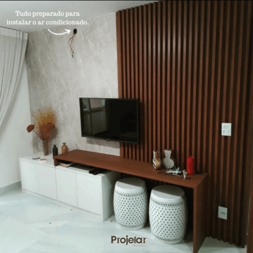 Aqui usamos um painel no padrão Fontana, com ripado no padrão Cinamomo.